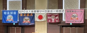 2025年度 NPO法人長野東リーグ卒団式・納会が執り行われました 投稿日: 2025年12月22日 投稿者: nh@manager 2025年12月21日、長野市内のホテルにて卒団式と納会が執り行われました。 今年度を持ってご卒団される選手の卒団式が執り行われ、 リトルシニア21名、Girls7名、Junior9名の総勢37名がご卒団されました。 卒団生、卒団生保護者の皆様、ご卒団おめでとうございます。 卒団生はそれぞれの新しい道へ羽ばたいてきます。 次のステージでも長野東魂で、ご活躍することを祈念いたします。